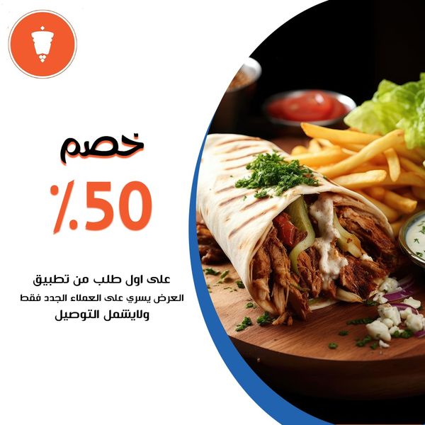 العروض المتوفره : 50% خصم على اول طلب من تطبيق العرض يسري على العملاء الجدد فقط ولايشمل التوصيل