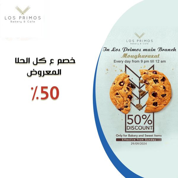 العرض : متوفر عرض خصم ع كل الحلا المعروض خصم خمسين في الميه .. كل يوم من 9 مساء 12ص