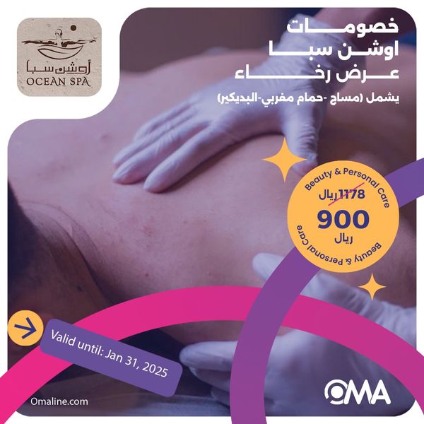 وجهة الرجل الأولى للعناية الشخصية والاستجمام، صمم مركز أوشن سبا، حيث الخيارات المتنوعة من المساج، معالجات الوجه، العناية بالقدمين واليدين والحمام المغربي على معايير أفخم مراكز المساج العالمية